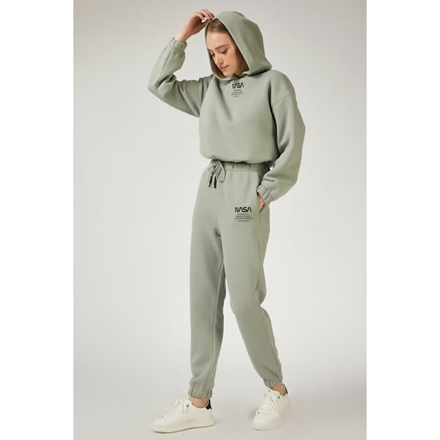 Happiness İst. Kadın Çağla Yeşili Polarlı Baskılı Eşofman Takımı