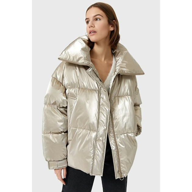 Stradivarius Kadın Gri Parlak Geniş Yakalı Şişme Mont